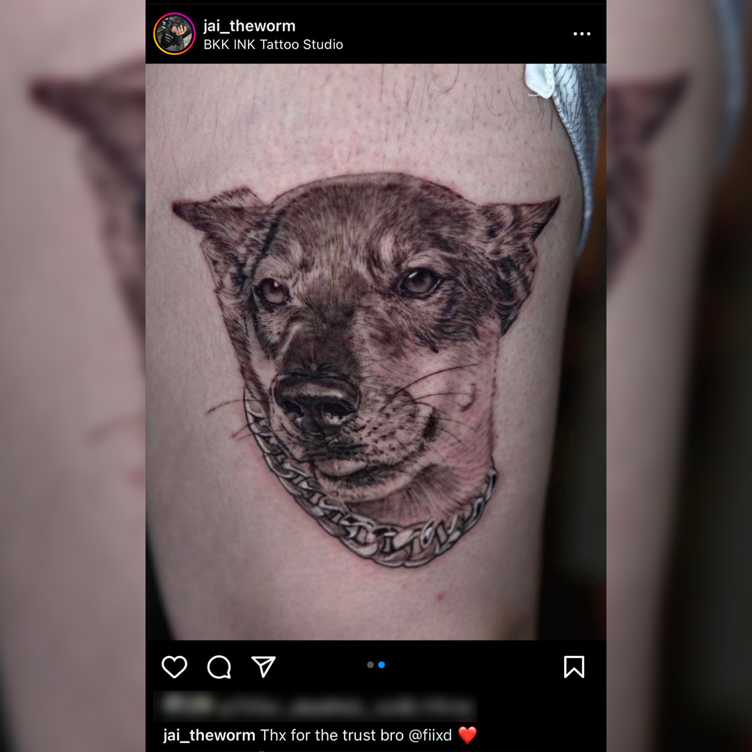 FIIXD ฝังเจ้า ‘บลู’ ไว้บนผิวหนัง น้องหมาที่เคยประกาศตามหาเมื่อต้นเดือนที่ผ่านมา จนตอนนี้ก็ยังไม่มีอัพเดทถึง ‘บลู’
