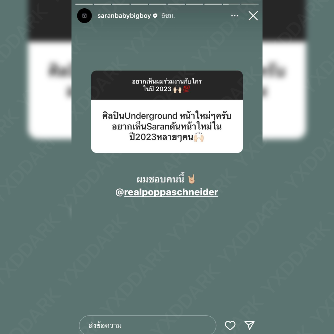 "ศิลปิน Underground หน้าใหม่ ๆ ครับ อยากเห็น SARAN ดันหน้าใหม่ ในปี 2023 หลาย ๆ คน"