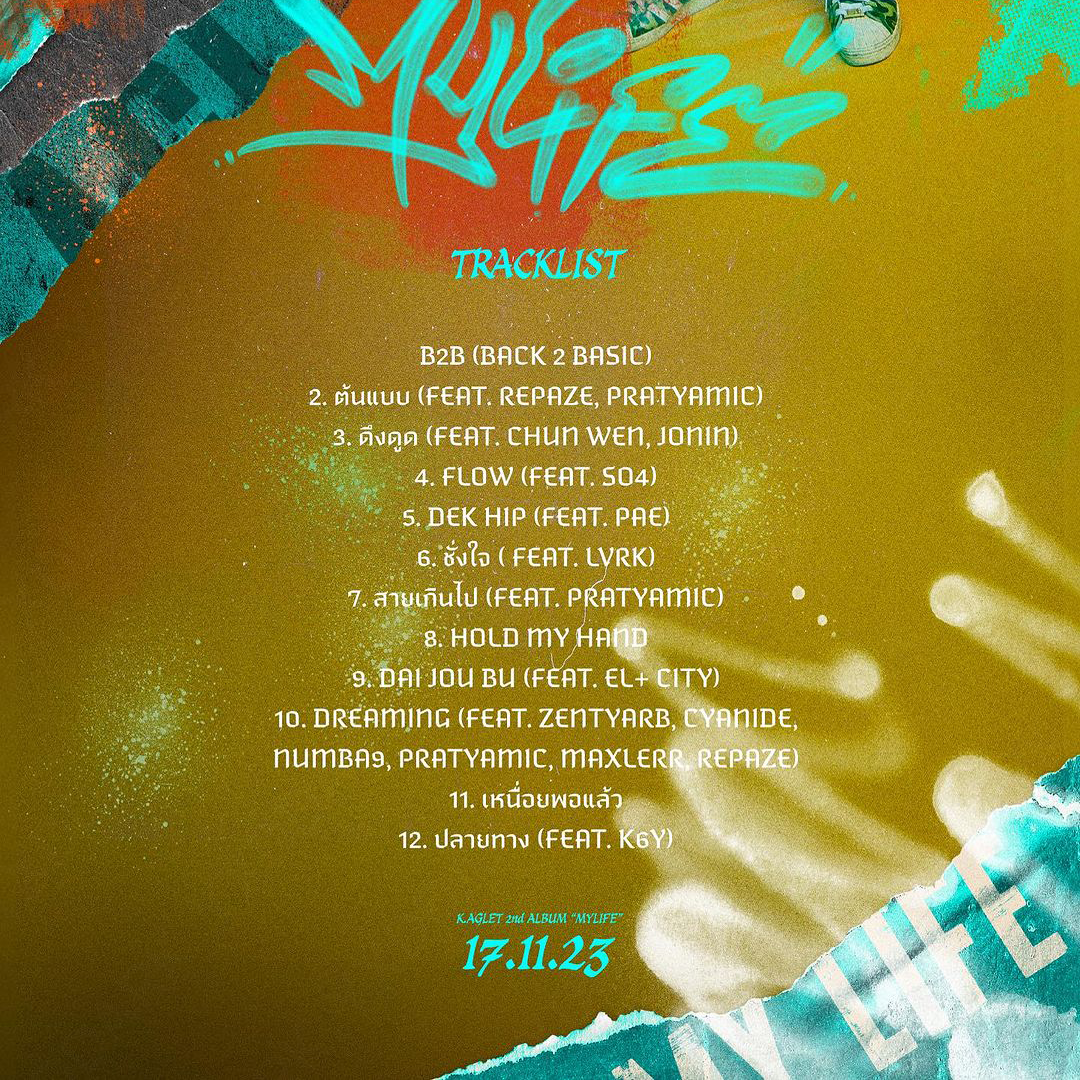K.AGLET ศิลปิน-แร็พชื่อดังสาย Old School ดีกรีแชมป์รายการ Show Me The Money จากพิษนุโลก ปล่อย 12 ปล่อยผลงานเพลงอัลบั้มที่ 2 ของเขาในชื่อ ‘MY LIFE’ อัลบั้มที่ประกอบด้วย 4 MV และ 8 Audio ให้ได้รับชม-ฟังกันในทุกช่องทาง Streaming ซึ่งอัดแน่นไปด้วยศิลปินที่มาร่วมด้วยถึง 13 คนอย่าง PRATYAMIC, REPAZE, CHUNWEN, JONIN, SO4, PAE, LVRK, EL+CITY, ZENTYEARB, CYANIDE, NUMBA9, MAXLERR และ K6Y ซึ่ง 12 ผลงานล้วนแล้วแต่ Prod. โดย ZOL ทั้งหมด