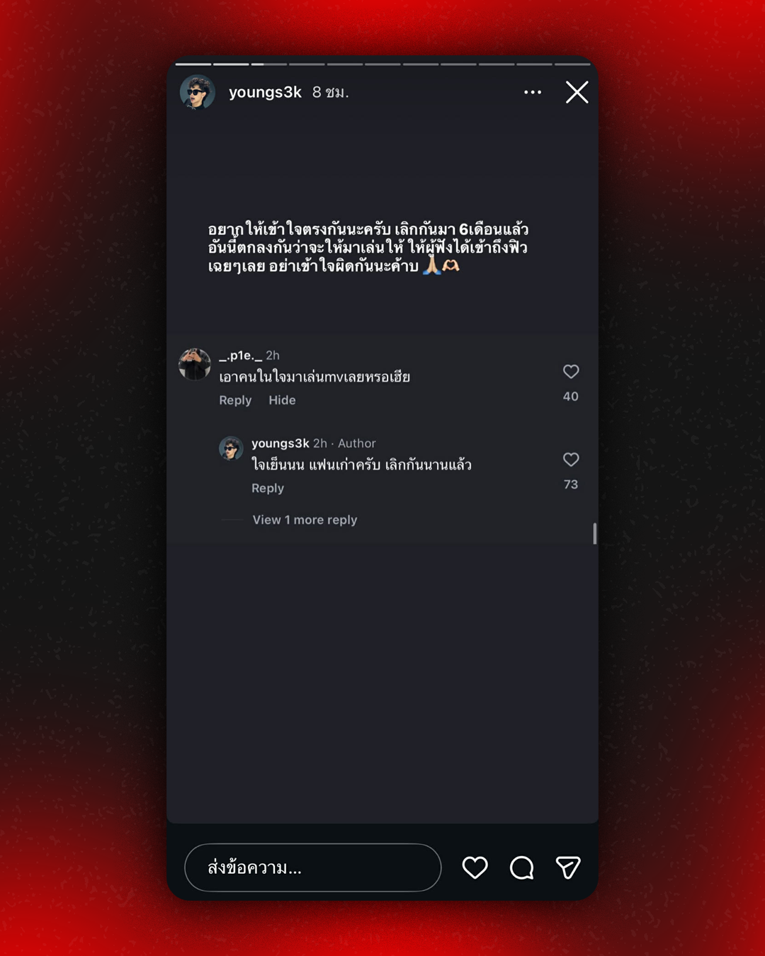 27 ธ.ค. 2568 | S3XSK1 ดรอป MV ใหม่ที่แฟน ๆ หลายคนรอคอยอย่าง ‘รู้ตัวอีกที’ ผลงานเพลงที่มากับ 2T FLOW ดูโอ้สังกัด D!eout พร้อมเซอร์ไพรส์ S3XSK1 พาอดีตแฟนสาวเข้าร่วม MV ด้วย จนทำให้แฟนเพลงเกิดการเข้าใจผิด และเจ้าตัวได้ออกมาอธิบายถึงเหตุผลในเวลาต่อมาว่าความสัมพันธ์ของเขา และเธอได้ยุติลงไปตั้งแต่ 6 เดือนที่แล้ว หากแต่เป็นเพียงการกลับมาร่วมงานกันเพื่ออรรถรส