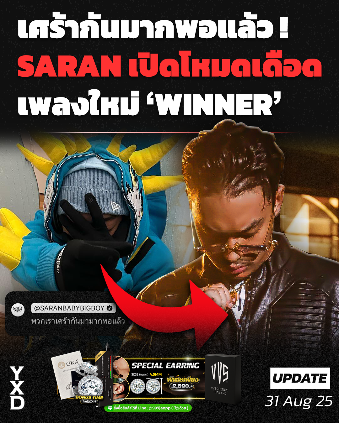 เศร้ากันมากพอแล้ว ! SARAN เปิดโหมดเดือด เพลงใหม่ ‘WINNER’...